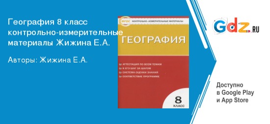 Если вы испытываете какие-либо сложности в учебе, то непременно рекомендуем вам наш замечательный сервис, где всегда можно найти ГДЗ по географии за 8 класс контрольно-измерительные материалы Жижина. Конечно, на самых первых уроках кажется, что этот предмет больше легкий и интересный, чем сложный. Так происходит потому, что сначала ребята просто зарисовывают схемы различных природных явлений, слушают увлекательные факты, касающиеся других стран и народов. Но с каждым годом степень сложности школьной программы возрастает в разы. В связи с этим учитель дает новые, более объемные и трудные домашние задания. Нередко надо заучивать длинные пересказы, составлять таблицы с анализом прочитанного и наносить на карту какие-либо значки.