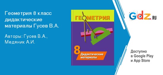ГДЗ по геометрии 8 класс дидактические материалы Гусев поможет школьникам, которые не успевают за 45 минут урока понять весь необходимый материал и испытывают трудности при выполнении домашних и классных практических заданий.
