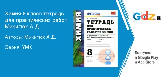 Рабочая программа ГДЗ тетрадь для практических работ по химии за 8 класс Автор: Микитюк А.Д.