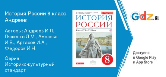 Чтобы качественно освоить гуманитарное направление в школе, восьмиклассникам целесообразно во время подготовки использовать «Решебник по Истории 8 класс Учебник Андреев, Ляшенко, Амосова, Артасов, Федоров (Дрофа)». На занятиях по «истории России» учащиеся изучат следующие особенности минувшего прошлого, которые были частью жизни населения, проживающего на территории нашего государства: