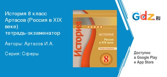 Решебник может стать и способом быстро выполнить домашнюю работу. Так как прямых ответов на вопросы нет, школьникам предстоит использоваться свою сообразительность. Итак, «ГДЗ по истории 8 класс тетрадь-экзаменатор Артасов И.А. (Просвещение)» способен научить ребенка справляться со многими трудностями.