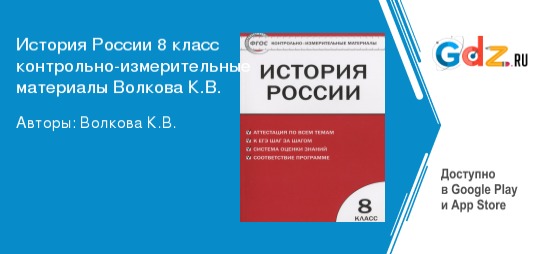 ГДЗ История России 8 класс Волкова контрольно-измерительные материалы (КИМ) ФГОС