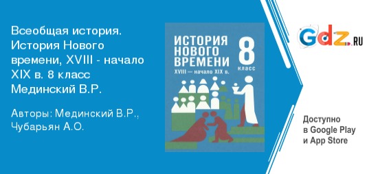 Целью этого учебнику является обеспечение комплексного видения истории XVIII — начала XX века, раскрытие сущности глобальных процессов и ключевых событий, повлиявших на развитие человечества. Данный курс истории помогает учащимся глубоко проникнуть в суть сложных общественных и экономических процессов, выявить тенденции, характеризующие сегодняшний мир, и приобрести навыки, необходимые для осмысленного восприятия окружающей действительности. ГДЗ к учебнику по истории для 8 класса авторов Мединский, Чубарьян предназначены для улучшения образовательных результатов учащихся путем предоставления проверенных решений и облегчения процесса выполнения домашних заданий. В нём можно найти: