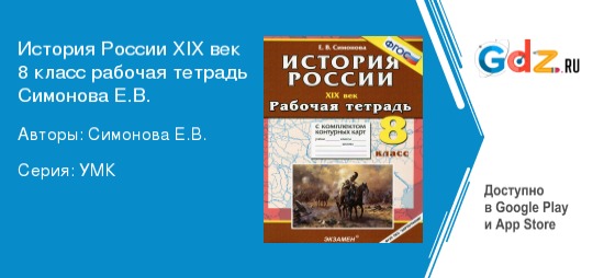 Варианты использования ГДЗ по истории России XIX век за 8 класс к рабочей тетради Симоновой Е. В. (Экзамен)