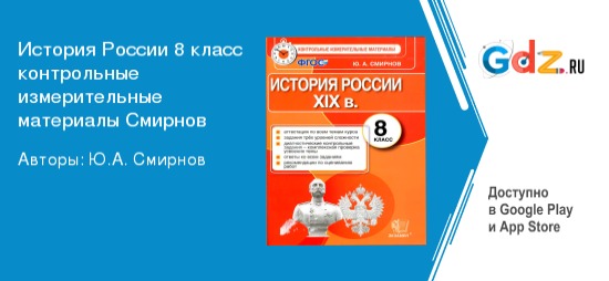 Работаем с ГДЗ по истории России XIX век за 8 класс к контрольно-измерительным материалам Смирнова