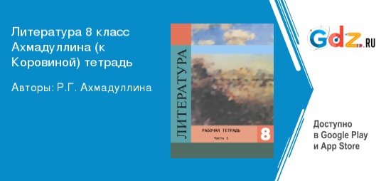 Сборник «ГДЗ рабочая тетрадь по литературе за 8 класс Р. Г. Ахмадуллина ФГОС часть 1, 2» разработан коллективом квалифицированных авторов