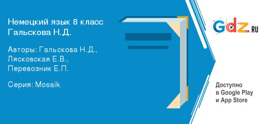 Владение в совершенстве любым иностранным открывает на сегодняшний день человеку огромные возможности. Немецкий привлекает по-особенному, несмотря даже на то, что он не является таким популярным как английский. Каждый, кто берется изучать дойч, имеет определенные причины. Ведь сегодня человек может свободно путешествовать, общаться с народами различных стран. Это поможет познать традиции и обычаи людей разных национальностей. Это очень расширяет кругозор и интересы, увлечения. К тому же, именно этот язык содержит множество занимательных необычных слов и понятий, а также он родной для более чем 130 миллионов человек. Он самый распространенный язык в Европе и в Японии, после инглиша. ГДЗ по немецкому языку за 8 класс Гальскова поможет каждому учащемуся в любой ситуации.