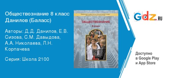 «ГДЗ по обществознанию за 8 класс Д.Д. Данилов, Е.В. Сизова, С.М. Давыдова, А.А. Николаева, Л.Н. Корпачева (Баласс)» становится все популярнее среди современных школьников, все это благодаря таким преимуществам, как: