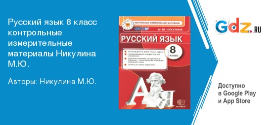 Трудно сосчитать, сколько активностей за день выполняет рядовой учащийся школы. В среднем он посещает по шесть разных предметов в день, на каждом из которых изучает совершенно разные науки. К любой из них нужен особый подход: где-то больше считать и вычислять, в другом случае конспектировать и слушать, в третьем — размышлять и отвечать устно. Есть и занятия по физкультуре, где ребята выплёскивают немало энергии. Всё это перемежается с плановыми или внезапными проверками, а по завершении учебного дня остаётся домашняя работа. Совершенно естественно, что школьники устают и выматываются, как физически, так и эмоционально и интеллектуально. Иногда необходимость быстро сменить деятельность застаёт врасплох. Но не с ГДЗ по русскому языку 8 класс контрольные измерительные материалы Никулина. Этот справочник поможет сориентироваться и настроиться на нужный лад в любой ситуации, ведь его составители знают, что нужно ученику и чего хотят от него преподаватели.