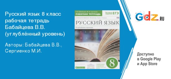 Обязательный курс решебника Рабочая тетрадь по русскому языку за 8 класс Авторы: Бабайцева В.В., Сергиенко М.И. Углубленный уровень