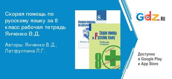 К сожалению, ученики очень часто экономят время именно на подготовке к урокам русского языка. Объясняется всё очень просто – подросток уверен, что он и так неплохо владеет этим предметом. Школьник говорит по-русски всю свою сознательную жизнь, читает и пишет, а время необходимо на занятия химией и прочими труднейшими науками. Как не допустить падения успеваемости? Достаточно регулярно обращаться за консультацией к личному онлайн-репетитору «ГДЗ по русскому языку, 8 класс Рабочая тетрадь Скорая помощь Янченко В.Д., Латфуллина Л.Г. (Просвещение)».