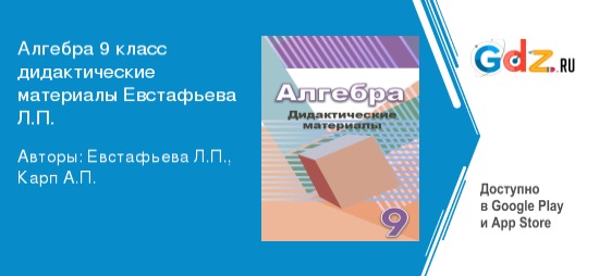 «ГДЗ дидактические материалы по алгебре за 9 класс Евстафьева Л. П., Карп А. П. ФГОС (Просвещение)» разработан коллективом признанных авторов в сфере образования