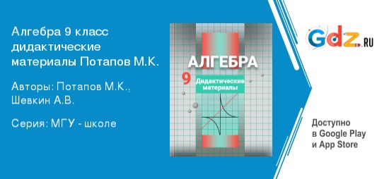 Если возникли проблемы с усвоением предмета, то стоит обратиться к ГДЗ по алгебре за 9 класс дидактические материалы Потапова. Девятый класс – это очень серьезное время для учеников. Для некоторых школьников последний год в «родных стенах». Алгебра сложный предмет, а в выпускном классе молодые люди должны как следует подготовиться к ОГЭ. Школьная рабочая программа иногда выматывает подростков, настолько она насыщенна.