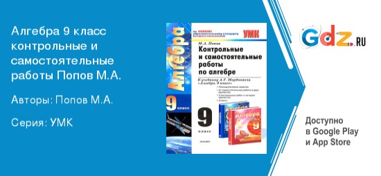 Сложность обучения в девятом классе заключается в том, что помимо освоения школьной программы, ребятам необходимо готовиться к Государственной Итоговой Аттестации (ГИА). Так как математика является обязательным экзаменационным предметом, изучению её разделов необходимо уделять особое внимание каждому школьнику. Оказать экстренную помощь, и ответить на все непонятные вопросы по предмету сможет «ГДЗ по алгебре за 9 класс контрольные и самостоятельные работы М. А. Попов (Экзамен)». Имея под рукой решебник, ученикам удастся: