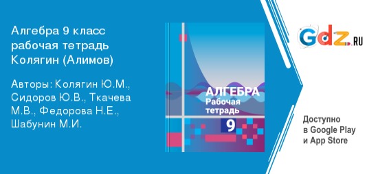 «ГДЗ рабочая тетрадь по алгебре за 9 класс Ю. М. Колягин, Ю. В. Сидоров, М. В. Ткачева, Н. Е. Фёдорова, М. И Шабунин» полностью соответствует всем строгим требованиям ФГОС и прилагающемуся к нему учебнику