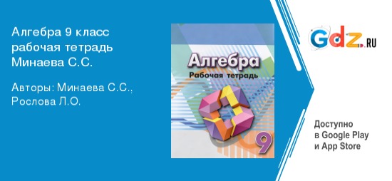 Девятый класс можно назвать переломным моментом обучения в средней школе. По завершении учебного года подростков ожидает серьёзное испытание знаний – экзамен, состоящий из двух основных письменных проверок: русского и математики. По второй дисциплине вопросы включают в себя алгебраические и геометрические задания. Аттестация весьма сложна, готовиться к ней надо долго и тщательно, начиная с первых уроков алгебры в девятом классе. Но ведь необходимо успеть работать и с теми предметами, которые не входят в число сдаваемых дисциплин. Как же ученику успеть подготовиться к ОГЭ, но при этом не снижать и текущую успеваемость по всем наукам? Для этого необходим очень важный участник учебного процесса: персональный виртуальный советник в виде сборника ГДЗ. Он разрабатывался специалистами в сфере образования, поэтому не стоит переживать насчет достоверности изложенных сведений. Пособие основано на дополнительном издании Минаевой С. С., выпущенном издательством «Просвещение» в 2017-м году.
