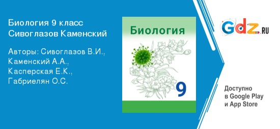 Подробнее о решебнике по биологии за 9 класс Авторы: Сивоглазов В.И., Каменский А.А., Касперская Е.К., Габриелян О.С.