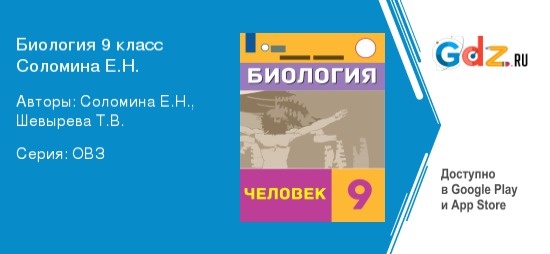 В девятом классе курс посвящен изучению развития человеческого организма. Школьникам предстоит познакомиться с эволюцией, историей возникновения жизни на Земле и т. п. Чтобы закрепить изученную теорию, необходимо отвечать на вопросы после параграфа, а также выполнять различные здания. А, если хочется не допускать ошибок в работе, рекомендуется использовать сборник готовых ответов под редакцией Соломиной и Шевыревой. Книга состоит из нескольких глав, в которых разбираются следующие темы: