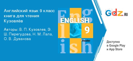Неотъемлемым дополнением к основному учебнику является решебник по английскому к книге для чтения для 9 класса (авторы: В. П. Кузовлев, Э. Ш. Перегудова, Н. М. Лапа, О. В. Дуванова). Она содержит тексты, короткие рассказы, отрывки статей, стихи, сопровождающиеся определёнными заданиями. Также здесь имеется русско-английский словарь и списки географических названий. Пособие поможет девятикласснику отработать и закрепить навыки чтения в полном объёме.