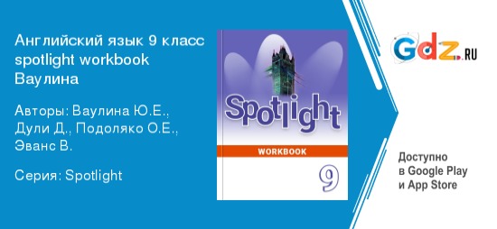 ГДЗ английский язык 9 класс spotlight workbook Ваулина – это то, что нужно каждому школьнику, который хочет иметь успешный аттестат. Это очень значимый документ для абитуриента, так как приемная комиссия по нему зачастую определяет, кому достанется бюджетное место. И, конечно, учиться на бюджете и получать стипендию за отлично и хорошо сданную сессию – это мечта каждого студента. Об этом стоит задуматься заранее, потому что года не хватит для полноценной подготовки к экзаменационным испытаниям. Иностранный – довольно популярный предмет среди учеников, так как все уже понимают, какую роль он играет в современном обществе. Изучать его не так просто, в каждом языке имеются свои сложности, поэтому некоторым школьникам необходима дополнительная помощь в изучении английского языка.