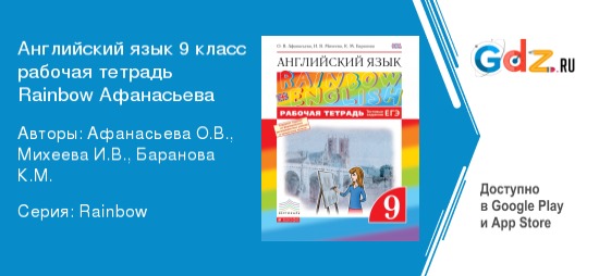 «ГДЗ рабочая тетрадь rainbow по английскому языку за 9 класс Афанасьева О. В., Михеева И. В., Баранова К. М. ФГОС (Дрофа)» – сборник, содержащий только верные ответы и подробные решения