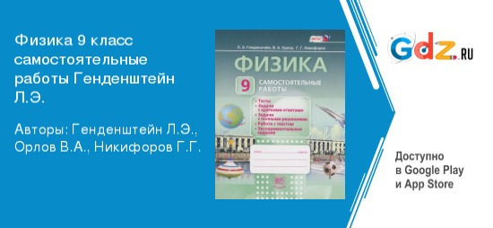 Онлайн-справочник с ответами к различным заданиям был разработан с целью облегчения учебного процесса. «ГДЗ по физике за 9 класс, самостоятельные работы, Генденштейн Л. Э., Орлов В. А., Никифоров Г. Г. (Мнемозина)» — это не просто помощник для каждого школьника, а надежный друг. Книга всегда придет на помощь и укажет истинный путь.
