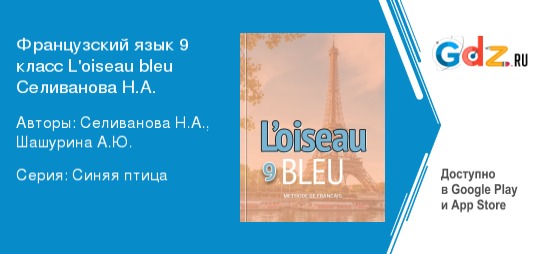 Несомненно, французский один из самых востребованных в мире. Обладая знаниями представленного диалекта, можно будет легко общаться практически в любой части родной планете. Если есть, какие-либо сомнения, берем историю и изучаем. А пока, для всех тех, кто сделал свой правильный выбор, представляем удивительный сайт с ГДЗ по французскому языку за 9 класс Селиванова, Шашурина. Замечательное педагогическое издание, которое познакомит школьников с новыми словами, выражениями, и проверит полученные ранее знания. Стоит помнить, что этот год для кого-то будет последним и на носу важные экзамены. Возможно, найдутся смельчаки, выбравшие данный предмет для сдачи по нему теста. Именно им, важно заниматься с двойным упорством. Такой темп способен разбить в лепешку кого угодно, чтобы этого не случилось, стоит вооружиться готовыми домашними заданиями. Теперь каждый день будет проходить только так, как захочет этого сам ученик.