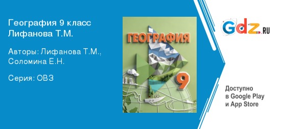 Готовые домашние задания по географии под руководством Лифановой и Соломиной эффективно поможет девятиклассникам в освоении одного из главных разделов естествознания. Решебник доходчиво разъяснит ученикам проблемные моменты каждой темы из представленного учебника. Вот некоторые другие полезные качества учебно-методического пособия ГДЗ: несёт в себе только верные ответы для каждого номера из дидактического материала; позволит качественно подготовиться к следующему уроку; поможет обрести уверенность в себе и в своих знаниях при написании важной контрольной работы. К тому же, сам учебник был разработан в строгом соответствии со всеми нормами и требованиями федерального государственного образовательного стандарта и рекомендован к изучению в школах самим министерством образования, что точно придется по душе, как школьникам, так и их родителям. В этом году ученики переходят на завершающий этап своего обучения в общеобразовательном учреждении. Ребята активно готовятся к предстоящим государственным экзаменам по основным дисциплинам. Из-за этих плотных тренировок по решению экзаменационных заданий, школьники могут столкнуться с трудностями в изучении географии. Например, если не получается самостоятельно, без помощи родителей и педагогов выполнить сложное домашнее задание. Или, если получают плохие оценки за контрольные работы. А, может, у ребят теряется мотивация к изучению данного предмета, и они начинают прогуливать уроки. А что еще хуже - ухудшаются отношения с преподавателем. А, чтобы оперативно преодолеть возникшие в учебе трудности и, как следует, освоить курс данной дисциплины, специалисты советуют воспользоваться услугами надежного вспомогательного ресурса. С этой задачей идеально справится грамотно составленный учебно-методический комплекс.