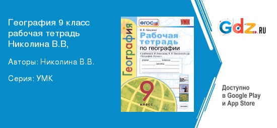 ГДЗ к рабочей тетради по географии 9 класс Николиной это один из способов не только проверить правильность выполненного домашнего задания, но и улучшить свои знания по географии. Он включает в себя ответы на вопросы и задания, которые могут возникнуть у учащихся при изучении материала. В нём можно найти ответы на задания, пояснения к решениям задач и примеры выполнения упражнений. Использование этого пособия поможет повысить успеваемость и улучшить образовательный процесс. Наш сервис предоставляет возможность поиска информации и решения задач в рамках образовательного процесса с целью саморазвития и улучшения понимания материала.