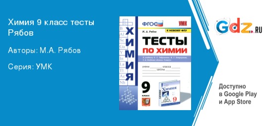 Для некоторых учеников химия в девятом классе довольно-таки сложна. Ведь она требует хорошего понимания математических законов, логического мышления, умения анализировать и делать выводы. Но при должном усердии и желании любой ученик сможет успешно освоить этот предмет. ГДЗ к тестам по химии под авторством Рябова М.А. позволяет ученикам проверить правильность выполнения заданий и усвоение пройденного материала. Они содержат ответы на вопросы и задачи из учебника или рабочей тетради, что помогает учащимся самостоятельно контролировать свои знания и находить ошибки в случае их наличия. Пособие полностью соответствует всем требованиям федерального государственного образовательного стандарта основного общего образования.