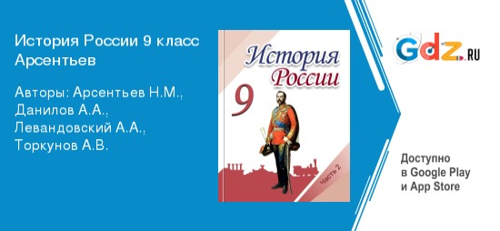 Вы уже знаете, что прохождение исторической дисциплины в школе очень важно. Это поможет и в дальнейшем освоении других дисциплин, а также расширении своего кругозора. Если вы вдруг не можете разобраться в каком-то вопросе и он кажется вам слишком трудным, то вы всегда сможете обратиться к онлайн-решебнику Арсентьева за 9 класс. В нем даны простые и ясные ответы и имеются пояснения.