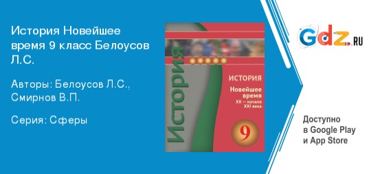 Как поможет ГДЗ Новейшее время, XX — начало XXI века по истории за 9 класс Авторы: Белоусов Л.C., Смирнов В.П.