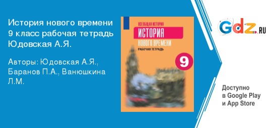 Учащиеся, решив номер-упражнение, всегда имеют возможность сверить его с данными решебника, и при необходимости исправить недочеты в своих записях. Делая это прежде, чем преподаватель успел проверить работу, учащиеся гарантировано получат хорошую оценку. ГДЗ-портал четко структурировано для лучшего запоминания информации и очень быстрого усвоения предмета-дисциплины. К тому же, пособие-шпаргалка всегда есть не только в печатном виде, но и в онлайн-формате. Доступ в сеть-интернет и наличие любого гаджета – это все условия, которые необходимы для связи с личным консультантом. Причем обратиться к решебнику-задачнику можно в любое время независимо от местонахождения. «ГДЗ по истории Нового времени 9 класс рабочая тетрадь А. Я. Юдовская, П. А. Баранов, Л. М. Ванюшкина» – помощник для всех. С ним педагоги уделяют больше внимания каждому ученику-ребенку, а взрослые всегда смогут объяснить непонятную тему-параграф, и проконтролировать выполнение уроков.