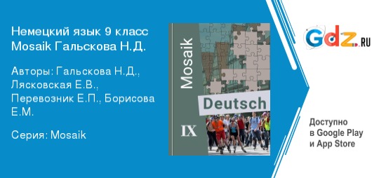 Теперь с нашим ресурсом вы сможете брать их с собой в школу и пользоваться на перемене подготавливаясь к уроку, или непосредственно на занятии, чтобы подсмотреть верный ответ во время ответственной контрольной или самостоятельной работы. ГДЗ по немецкому языку 9 класс Гальскова Н. Д., Лясковская Е. В., Перевозник Е.П. Борисова Е.М., благодаря онлайн-формату, доступны с любых гаджетов с выходом в интернет, и воспользоваться ими можно где угодно, даже в автомобильной пробке на дороге или на отдыхе с родителями.