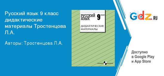 В современных школьных реалиях вспомогательное онлайн-пособие «ГДЗ по Русскому языку 9 класс Дидактические материалы Тростенцова Просвещение» отлично подойдет для самостоятельных занятий дома, на кружках или занятиях с репетитором.